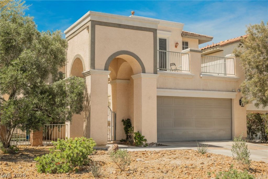 A VIEW TO BUY FOR!! Very desirable corner lot home in gated community featuring spectacular panoramic MOUNTAIN and CITY LIGHT views! This beautiful 4-bedroom, 3-bathroom home offers an open and inviting layout with vaulted ceilings, granite countertops, and stainless steel appliances. The home includes high ceilings throughout with ceiling fans in all bedrooms, a balcony off the front bedroom, and a well-designed floor plan. The secondary bathroom features dual sinks and a shower/tub combo, while the primary bath offers a separate tub and shower. Step outside to your private backyard oasis, complete with a covered patio, built-in BBQ, and breathtaking views?perfect for relaxing or entertaining.